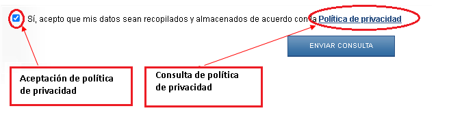 Una vez cumplimentados los datos de la consulta, se procederá a pulsar el botón “Enviar consulta”.